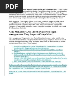 Cara pemakaian calm meter digital dan multimeter analog sistem instrumentasioleh: Pada gambar diatas adalah contoh pengukuran tegangan atau cara mengukur voltase listrik menggunakan tang amper dengan pengaturan skala volt ac . Cara mengukur arus listrik (ampere) dengan menggunakan tang ampere (clamp meter) · putar atau setting saklar clamp meter ke posisi ampere meter (biasanya . Clamp meter atau disebut juga dengan tang ampere merupakan alat ukur yang dipakai untuk mengukur arus listrik pada sebuah kabel konduktor yang dialiri arus . Clamp meter lebih populer dikalangan teknisi dengan nama tang ampere dia adalah alat uji kelistrikan yang menggabungkan multimeter biasa .